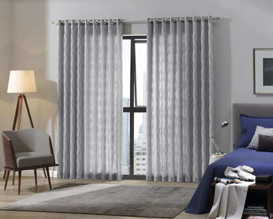 Cortina em voil trabalhado com forro poliéster e ilhós para varão